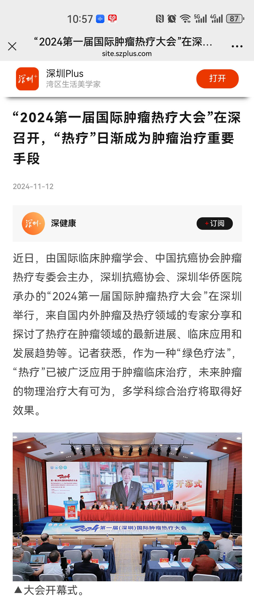 据了解,深圳华侨医院被授予“全国肿瘤热疗示范基地”,医院积极打造整合放疗、化疗、微创介入、热疗等多维度肿瘤综合治疗模式。董文广表示,希望通过本次国际肿瘤热疗大会建立起高质量、高水平的学术平台,促进深圳地区肿瘤热疗进一步发展,促进我国热疗事业的发展。