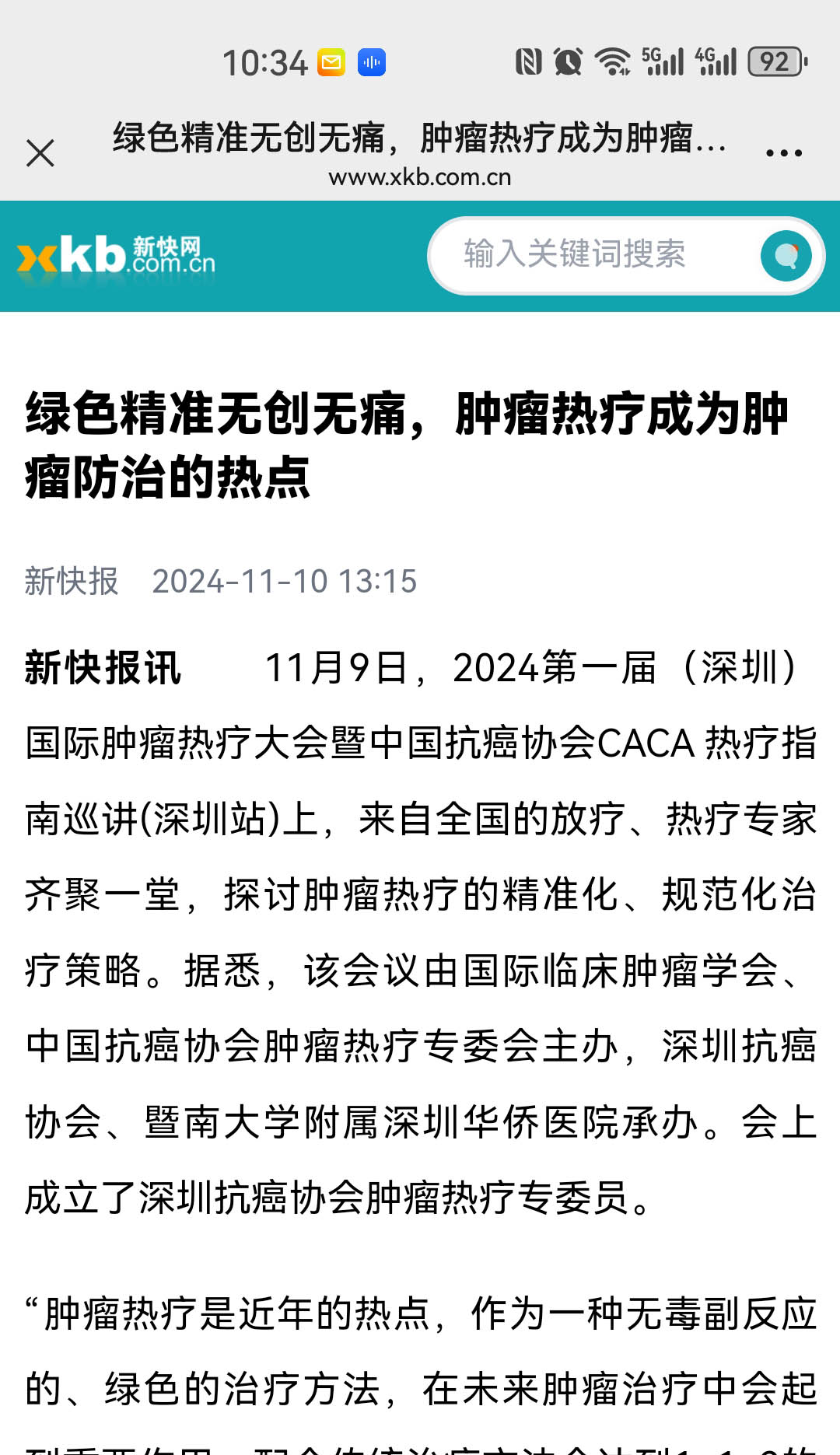 新快报讯 11月9日,2024第一届(深圳)国际肿瘤热疗大会暨中国抗癌协会CACA 热疗指南巡讲(深圳站)上,来自全国的放疗、热疗专家齐聚一堂,探讨肿瘤热疗的精准化、规范化治疗策略。据悉,该会议由国际临床肿瘤学会、中国抗癌协会肿瘤热疗专委会主办,深圳抗癌协会、暨南大学附属深圳华侨医院承办。会上成立了深圳抗癌协会肿瘤热疗专委员。