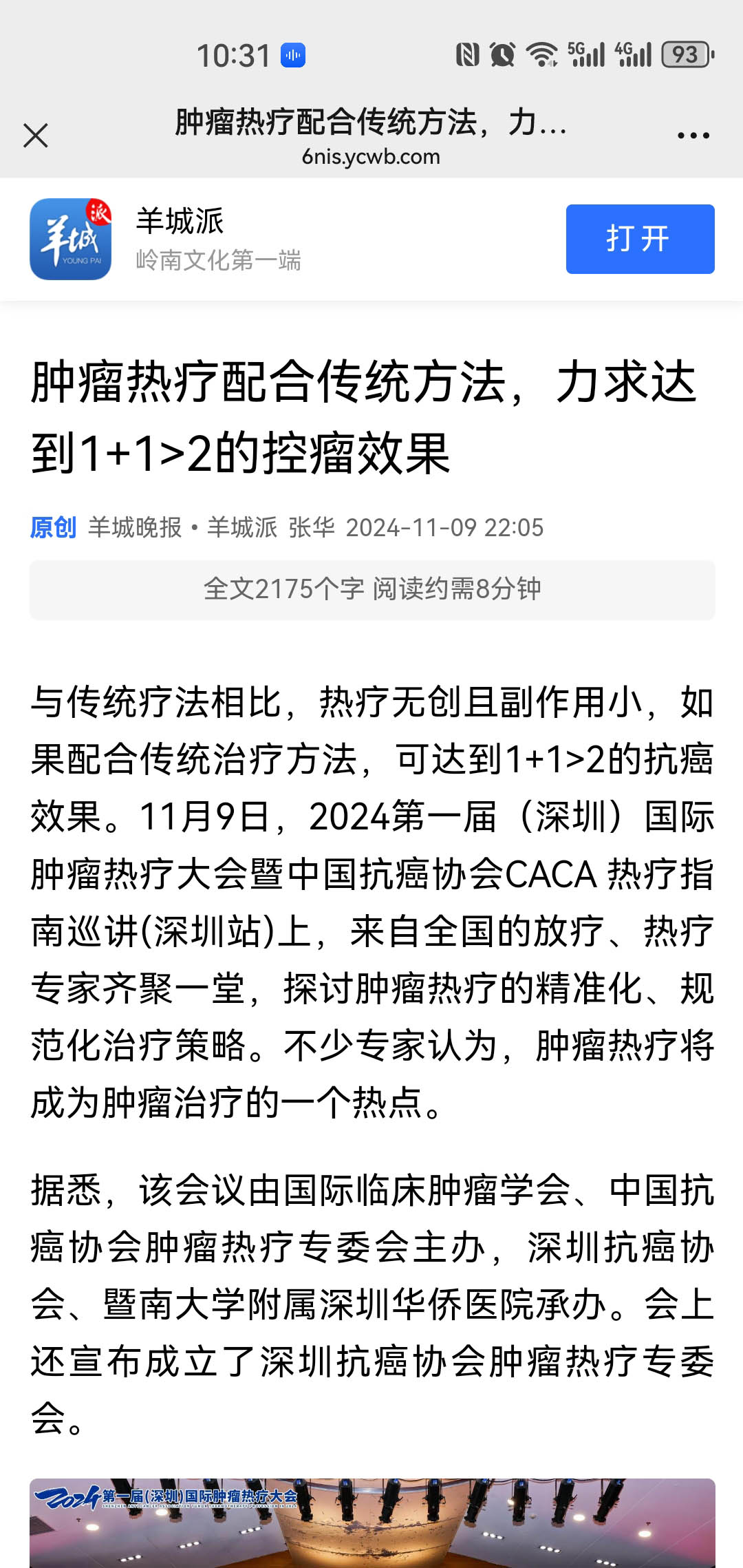 11月9日,2024第一届(深圳)国际肿瘤热疗大会召开