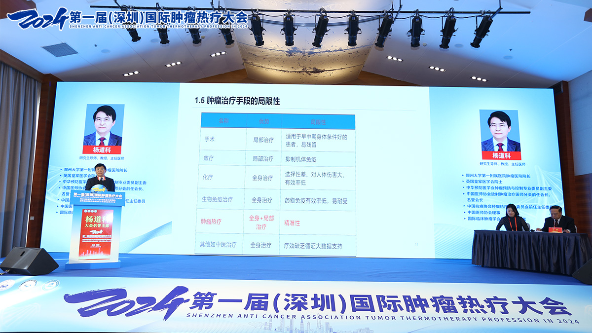 杨道科教授以《近代热疗学科形成与发展》为题进行演讲,深入介绍了近代热疗学科的发展历史,分析了其在癌症治疗中的重要作用。