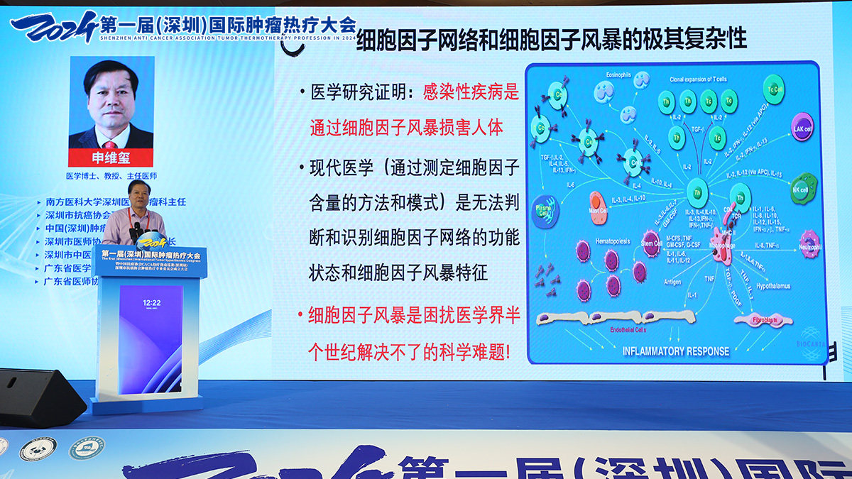 美国微生物科学院院士、深圳第三人民医院卢洪洲院长以视频方式致辞,强调未来肿瘤治疗将以规范化和多学科合作为导向,热疗作为关键治疗手段之一将发挥重要作用。