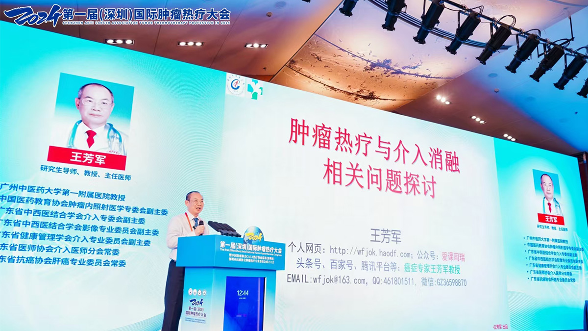 王芳军教授以《肿瘤热疗与介入消融相关问题探讨》为题,探讨了热疗与介入消融在肿瘤治疗中的作用,并分享了实际应用案例。