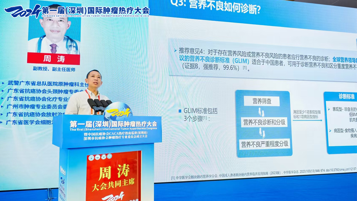 周涛教授以《中国成人患者肠外肠内营养临床应用指南解读》为题,解读了最新的营养应用指南,强调了营养支持在癌症患者治疗中的关键作用。