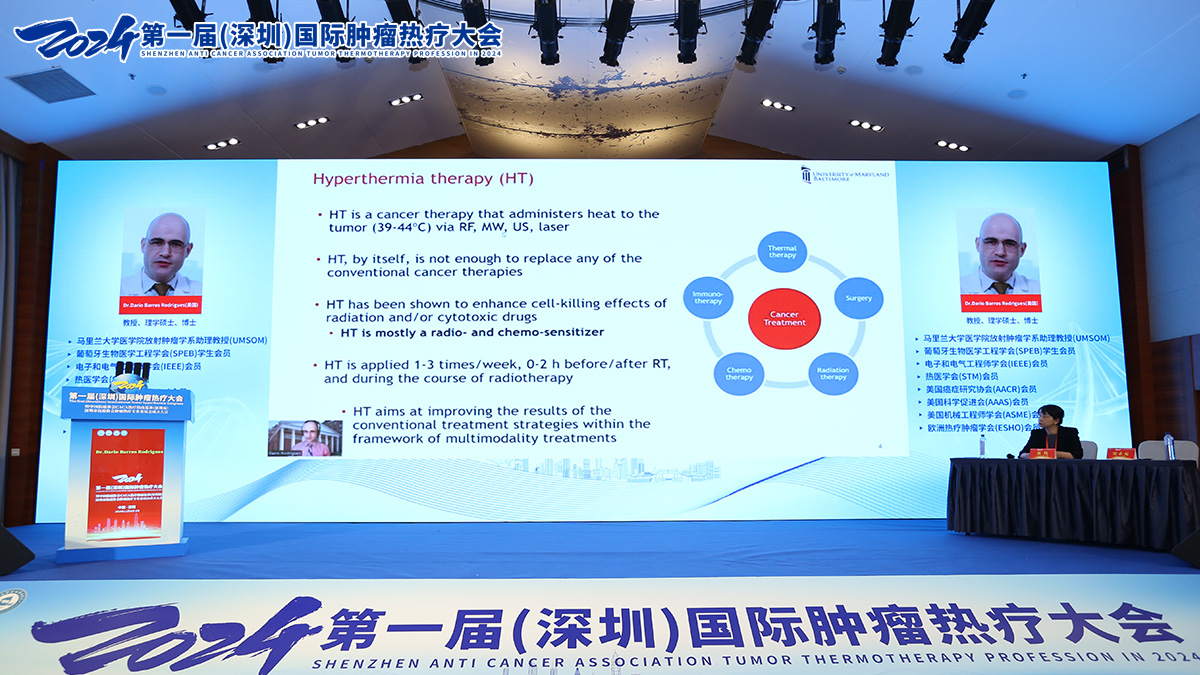 美国的Dr. Dario Barros Rodrigues教授从国际视角出发,以《Deep Hyperthermia Therapy》为题探讨了深部热疗在不同类型肿瘤中的应用,分享了该技术在临床研究中的最新数据及成功案例,展现了深部热疗在提高癌症治疗效果方面的潜力。